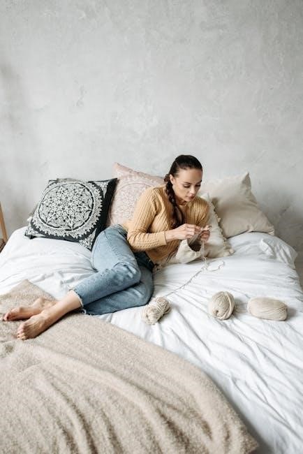 Acrylic, wool, and blended yarns are popular choices, offering durability and softness. Selecting the right yarn and needles ensures proper texture and project success, as outlined in free PDF guides.